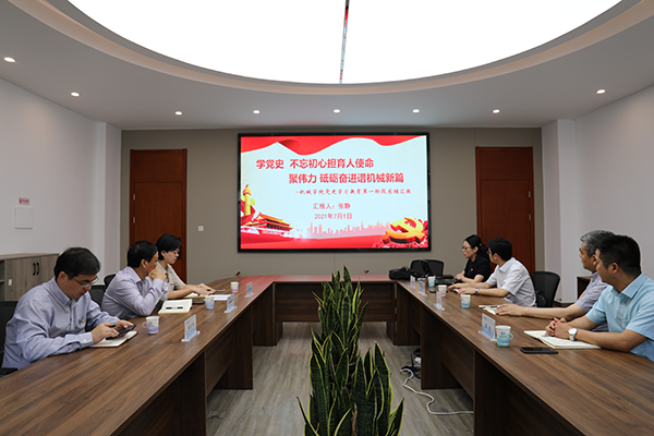 陈章龙组长一行三人赴机械技术学院,党总支书记王骏总体介绍了总支按照校党委要求部署和开展党史学习教育情况,党总支副书记张静作了题为《学党史,不忘初心担育人使命;聚伟力,砥砺奋进谱机械新篇》的机械学院党史学习教育第一阶段工作汇报,汇报涵盖总支动员部署情况、各支部学习开展情况及特色活动等。