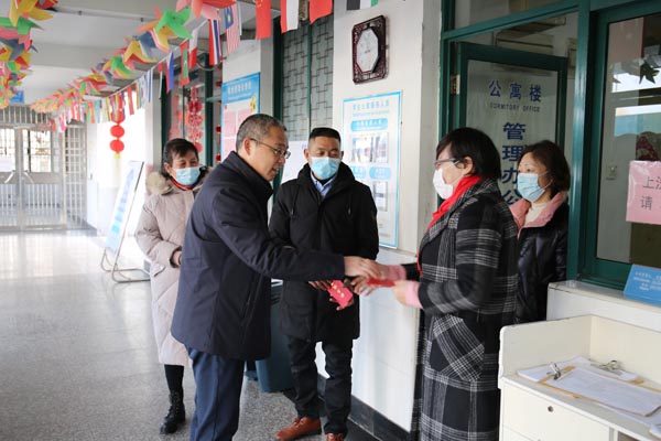 212日,农历辛丑牛年第一天,杨雪琴副校长、强伟纲副校长在党校办、学生处、保卫、后勤、国际教育学院等相关部门、学院负责人的陪同下,走访慰问了春节期间仍坚守在工作岗位的教职员工和因疫情原因留校的国内外学生,为他们送上新春的第一声祝福。