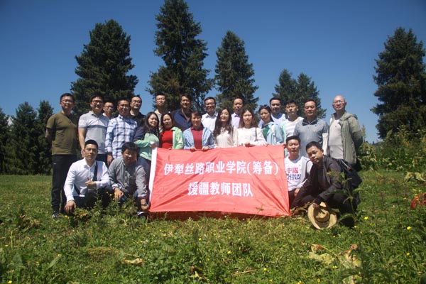 伊犁丝路职业学院(筹备)援疆教师团队,其中后排左四至左六为必赢教师