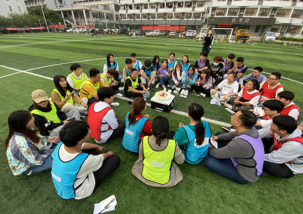 素质拓展分为准备活动、团辅活动、交流分享三个环节。在工作人员的带领下,同学们完成准备活动之后,展开了“前方有难后方支援”“千人过河”“指压板借力挑战赛”“撕名牌”四个团辅项目。“前方有难后方支援”环节主要考验同学们的反应能力和奉献精神,有助于增强团队凝聚力;“千人过河”主要考验同学们的团队协作能力及统筹安排技巧;“撕名牌”则展示出团队合作能力、协调能力、应变能力。