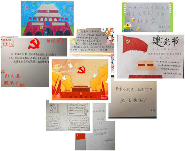 财经学院入党积极分子和预备党员们积极参加活动,结合活动主题立足共产党人的初心使命,通过手写祝福语、手绘海报等多种形式对党进行真挚的“告白”:“党的光辉照耀,一路高歌创辉煌。”“人民不仅有权爱党而且爱党是个义务,是一种光荣。”“青春心向党,祝党99岁生日快乐!”……声声祝福让同学们一同感受这栉风沐雨的99年,将对党的铮铮誓言印在心中,用激情满怀的奋斗告白祖国告白党。