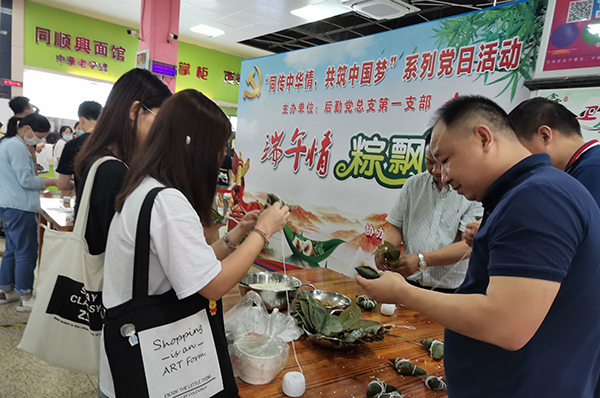 为进一步学习贯彻党的十九大精神,弘扬中国传统文化、引导学校师生做中国文化的弘扬者、实践者、传播者,培养党员对中华文化的自豪感,6月24日,后勤党总支第一支部开展“同传中华情 共筑中国梦”系列党日活动之“端午情粽飘香”主题。