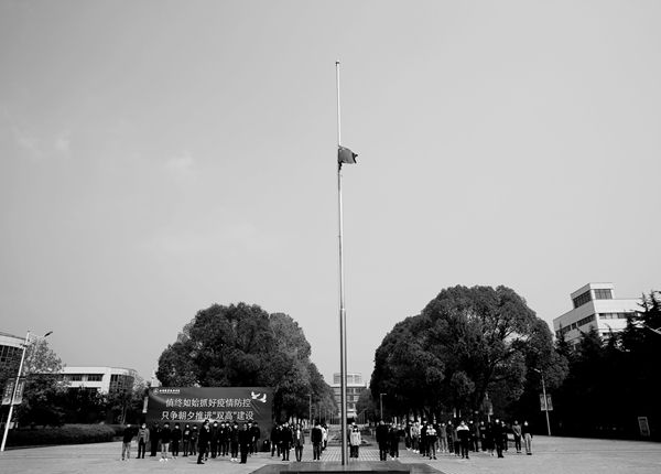 44日,学校降下半旗,表达对抗击新冠肺炎疫情斗争牺牲烈士和逝世同胞的深切哀悼。上午10时,学校在国旗下举行哀悼活动,伴随防空警报一起,向新冠肺炎疫情牺牲烈士和逝世同胞默哀3分钟。杨雪琴副校长,党校办、团委、学生处、保卫处等部门有关人员及在校生等80余人参加活动。
