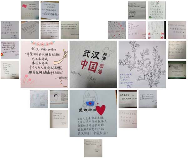 “如期而至的不只是春天,还有疫情过后平安的你”、“愿山河无恙,人间皆安”、“待到樱花烂漫时,我们一起相约武汉”……句句话语之中充满了同学们对战胜疫情的信心与对所有奋战在工作者们最崇高的敬意。财经学院的入党积极分子们用手写加油接力的方式,写下祝福将爱传递,为他们加油,为中国加油!