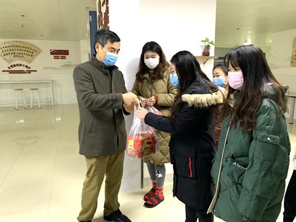 随后,校领导一行还向同学们发放了慰问品。留校同学对校领导的关心慰问表示感谢,并表示会牢记叮嘱,根据学校要求认真做好疫情防控工作,度过一个安全健康的假期。