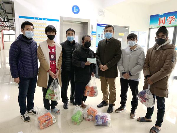 2月8日,农历传统元宵佳节,党委书记朱爱胜、校长龚方红、副校长强伟纲在学工、国教、校办等部门相关人员陪同下,到学生宿舍看望并慰问了疫情防控期间留在学校的本专科生和留学生,为他们送上节日的祝福,同时就疫情防控工作进行指导。