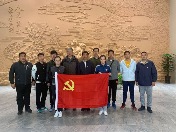 体育部党员纪念塔前合影留念