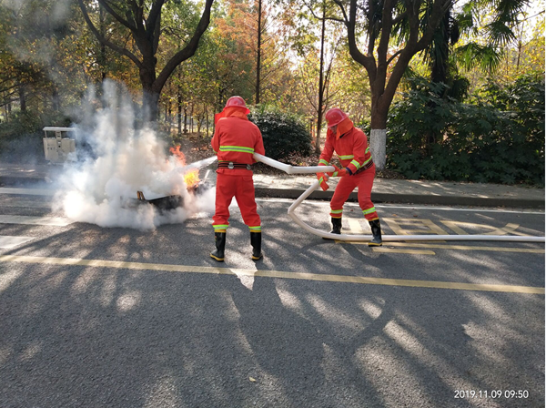 11月9日上午,保卫处组织驻校保安项目部保安队员及义务消防员开展了消防知识培训及消防应急演练,重点就校园火灾的成因特点、灭火器的种类及不同用途、火灾分类与对应灭火技能、消防报警系统及消防器材的日常巡检规范等进行了专题教育培训,并开展了灭火技能实操训练和组织疏散逃生实操演练。打铁还需自身硬,校园义务消防员及专职保安人员是扑灭校园初起火情的重要力量,是有效降低火灾事故损失的第一梯队。
