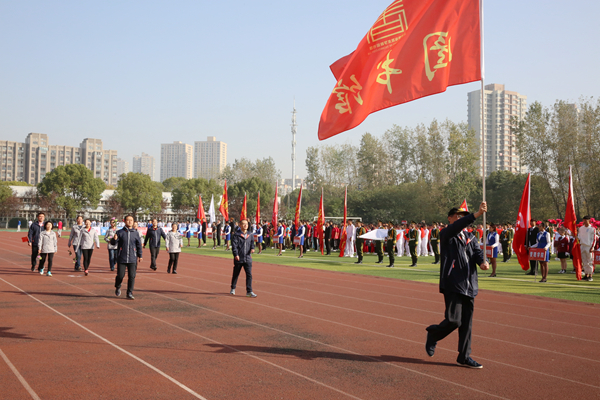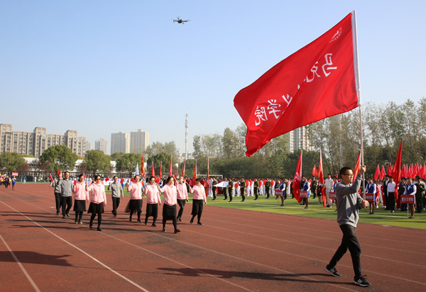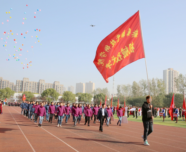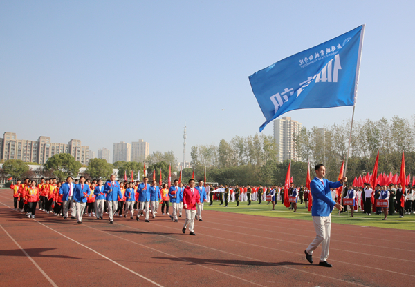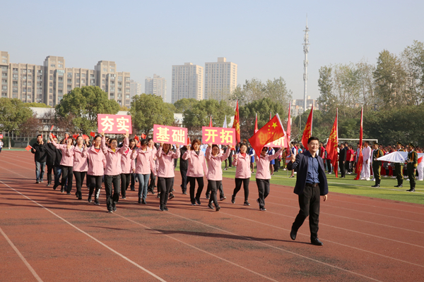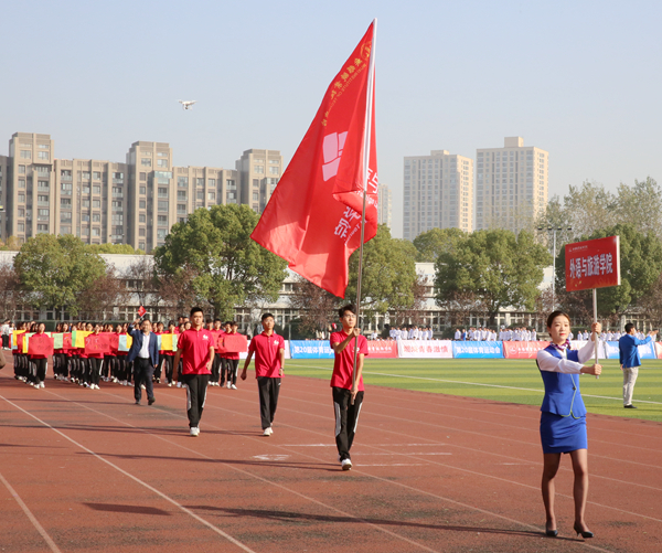 随后,裁判员代表和运动员代表分别宣誓,校党委书记朱爱胜宣布运动会开幕。在精彩的广播操比赛和团体操表演之后,1258名学生运动员参加了30个田径项目的激烈角逐,近800名教职工运动员参加了17个项目的紧张比赛。经过两天的比拼,机关工委、后勤、物联网技术学院、机械技术学院、控制技术学院、外语与旅游学院代表队获得教工组团体总分前6名;物联网技术学院、财经学院、汽车与交通学院、外语与旅游学院、控制技术学院、管理学院代表队获得学生组团体总分前6名;物联网技术学院、控制技术学院、汽车与交通学院、外语与旅游学院、管理学院、艺术与设计学院获得广播操比赛前6名;机械技术学院、华飞航空学院获得突出贡献奖;机关工委、基础课部、国际教育学院、机械技术学院、艺术与设计学院、外语与旅游学院6个代表队获体育道德风尚奖。今年的运动会上,汽车与交通学院毕仕强同学在男子跳远比赛中,以6.57米的成绩打破了保持17年之久的校运会记录,达到了国家二级运动员的水平。