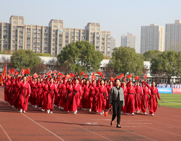 升国旗仪式后,杨雪琴副校长致开幕辞,回顾了过去一年必赢体育教学改革、学生体育竞赛、群众性体育活动取得的佳绩:必赢学子在2018年中国大学生武术套路锦标赛中获得太极推手男子丙组65公斤级冠军,在江苏省第四届高职高专院校学生足球技能比赛中收获个人项目一等奖7项和团体总分二等奖,在无锡高校第六届乒乓球比赛获得亚军,校篮球队获得2018年无锡高校大学生篮球比赛第三名;教职工在2018年无锡市第十一届机械行业篮球邀请赛中获得第三名,在无锡高校第六届乒乓球比赛中获得第三名,冯伟老师和谢友成老师在江苏省第三届高职高专院校体育教师教学大赛中分获一等奖和三等奖,冯伟、吴斌、李博老师获得江苏省第三届高职高专院校体育教师教学大赛课程标准比赛三等奖。同时希望大家享受运动魅力,享受体育乐趣,汇集育才力量,凝聚奋斗精神,见证学校发展,创造事业辉煌。