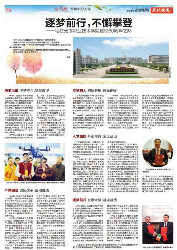【现代快报】逐梦前行,不懈攀登——写在无锡职业技术学院建校60周年之际