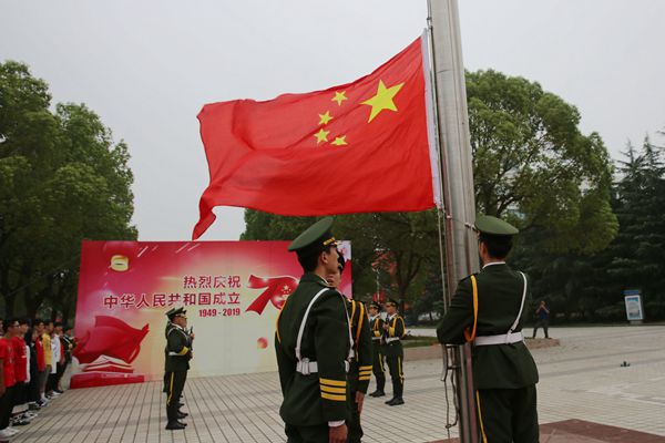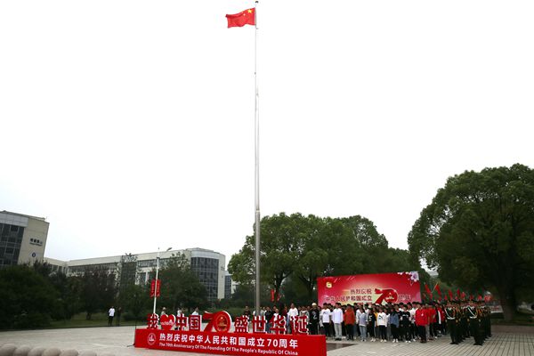 10月1日清晨,无锡职业技术学院师生以“我和我的祖国”为主题举行庆祝中华人民共和国成立七十周年升国旗仪式,百余名师生代表聚集在无锡职业技术学院中央大道,面对鲜艳的五星红旗,用嘹亮的歌声祝福祖国。