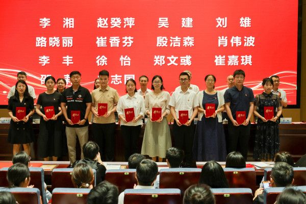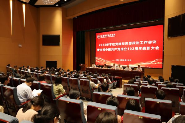 6月27日下午,学校在厚德楼一楼报告厅召开党建和思想政治工作暨庆祝中国共产党成立102周年表彰大会。校领导龚方红、周桂瑾、杨雪琴、强伟纲、吴慧媛、李衔、奚茂龙,中层干部、辅导员、二级党组织负责人和思政教师代表等150多人参加了大会。