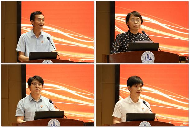 吴斌、吴华萍、陆忠华和刘世强四位同志分别代表先进基层党组织、优秀共产党员、优秀党务工作者和优秀辅导员作交流发言。