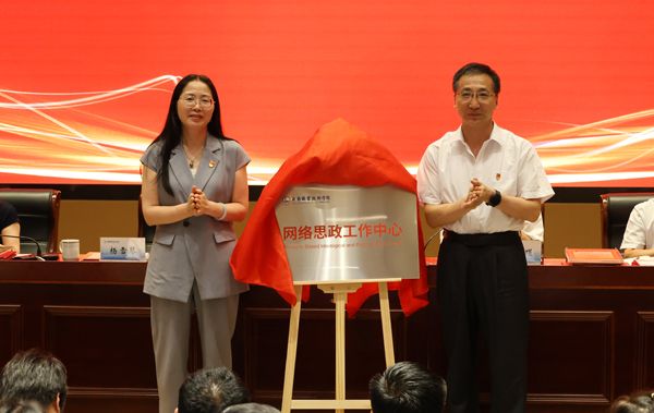 为开启校园新媒体联动传播、融合发展新模式,主动抢占网络宣传思想工作阵地,学校网络思政工作中心也于当天成立,副校长强伟纲宣读网络思政中心成立文件,校党委书记龚方红、党委副书记杨雪琴为中心揭牌。