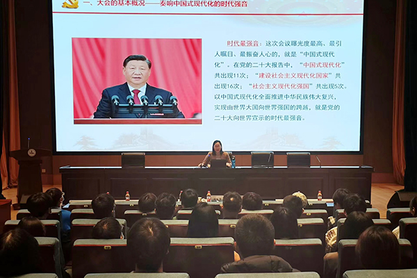 活动现场,必赢马克思主义学院副教授赵癸萍还为与会师生作了党的二十大精神辅导报告。