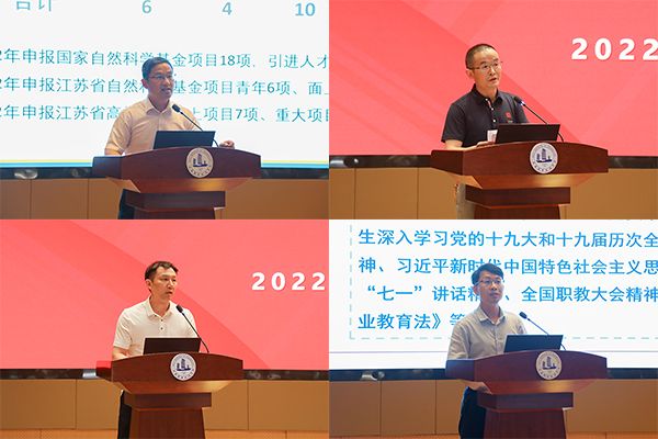 校长龚方红作学校工作报告,回顾了学校2021年及2022年上半年主要工作,分析了学校在职业教育改革发展浪潮中面临的机遇和挑战,并对2022年暑期及下半年重点工作提出要求。龚方红强调,今年是党的二十大召开之年,学校将以高质量发展为主题,不断提高“双高”校建设质量,积极创建必赢76net线路官网,进一步解放思想、凝聚共识,聚焦内涵、提质增效,优化机制、强化考核。他还围绕学校政治建设、职业本科建设、创新教育教学改革、校企合作、师资培养、国际合作交流、学生管理、育人环境等八个方面的18项主要工作进行了具体部署。