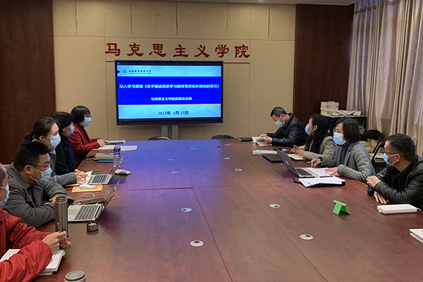 近日,中共中央办公厅印发了《关于推动党史学习教育常态化长效化的意见》,322日下午,马克思主义学院直属党支部利用线上线下平台相结合的方式,组织全体教师认真学习文件精神。