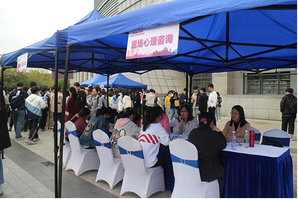 10月28日下午,必赢机关三支部在图书馆前开展党员志愿服务活动,组织了大学生职业生涯探索及咨询服务、大学生阳光心理文化节两项专场活动,共吸引1000余名同学参与。