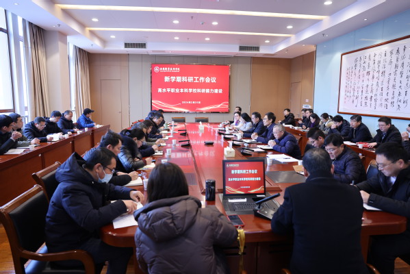 为进一步推动学校科研工作高质量发展,深入分析当前学校科研工作的优势、存在问题和面临的挑战,进一步明确高水平职业本科学校科研平台和队伍建设的重要意义、目标任务、工作重点和具体措施,更好地落实学校2024年重点工作,2月25日,学校在厚德楼F201召开2024年度新学期科研工作会议。相关校领导,各教学单位行政负责人、分管科研副职领导,千万级研究所所长, 校办、科技处、社科处、研究中心等部门负责人参加会议,会议由副校长吴慧媛主持。
