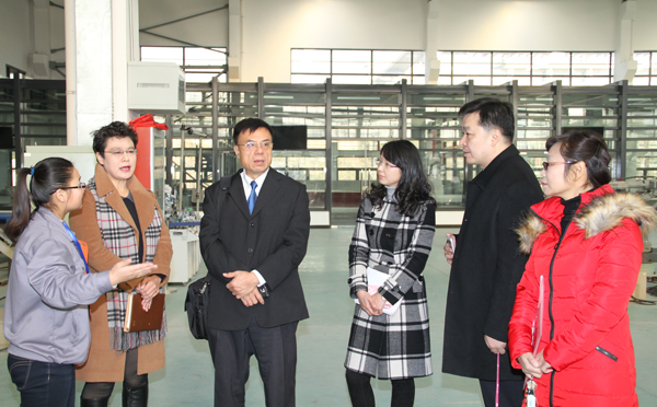 江金山(左三)、陈铉文(右二)博士参观必赢智能工厂
