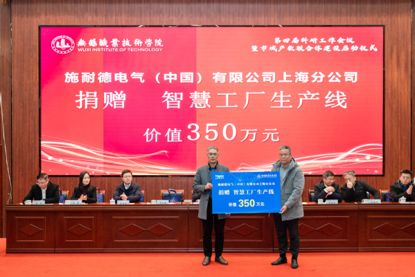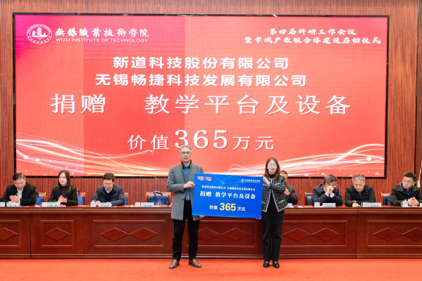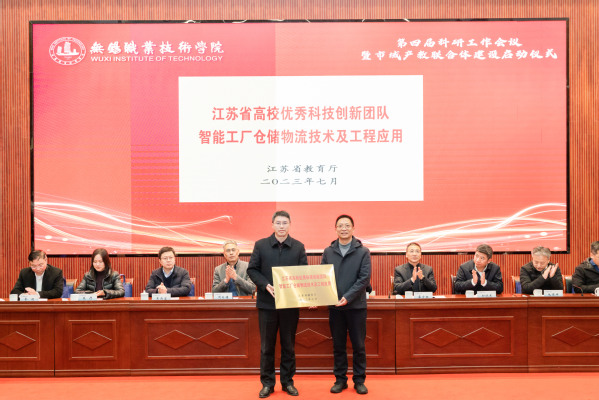 开幕式上,出席会议的嘉宾和校领导共同为必赢江苏省智能产线视觉检测与应用工程技术研究开发中心、工信部“数字化设计与制造专精特新”产业学院、江苏省科普教育基地、无锡市重点实验室等机构正式揭牌。冯益民为必赢2023年度江苏省高校优秀科技创新团队——智能工厂仓储物流技术及工程应用团队授牌。周桂瑾代表学校与企业签订3项重大技术合作项目、3项校企合作重点项目,并接受施耐德、一道云、中机宇龙、新道、阿里云等6家企业现场捐赠,捐赠的智慧工厂生产线、软硬件教学资源包、数控仿真软件、教学平台及设备等价值累计1322万元。会上必赢还举行了研究生培养进站仪式,必赢与江南大学联合申获的省级研究生工作站首批研究生及其导师共计15人签约进站。