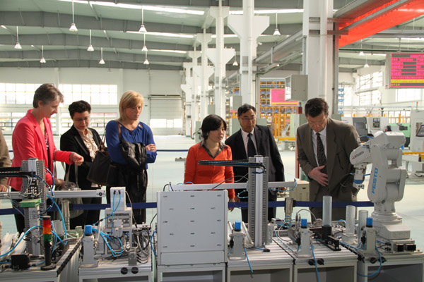 冯渊副校长陪同布朗主席一行参观了智能工厂和汽车SGAVE项目教学现场,布朗主席和拉梅奇院长对必赢融“设计数字化、装备智能化、生产自动化、管理网络化、商务电子化”为一体和集教科研服务为一体的现代化“RFID智能工厂”表示惊叹,指出必赢职业教育改革和人才培养模式已紧紧跟上国际先进技术发展趋势。冯渊副校长还向外宾详细介绍了无锡本土历史文化传统,CCID学生海外修学项目经理希伯曼女士等对无锡文化和经济发展产生浓厚兴趣。