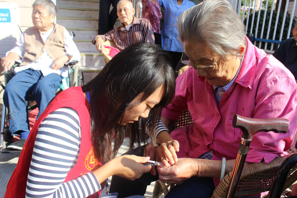 志愿者为老人剪指甲