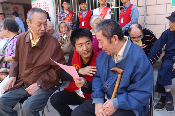 志愿者们一到颐养院,便立即按照分工行动起来,有的帮助打扫卫生,有的为老人整理房间,还有的布置演出现场,志愿者们热火朝天而有条不紊地忙碌着,老人们脸上露出欣慰的笑容。在慰问演出环节,同学们自编自演的独唱、舞蹈、小品、乐器演奏等不时获得老人们的掌声和笑语,有几位老人还主动参与其中,为大家献上京剧表演。