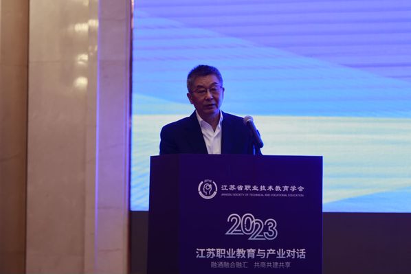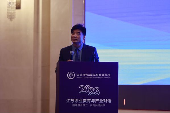 吉林工程技术师范学院职业技术教育研究院院长、《职业技术教育》杂志副总编张祺午做《从哪里来、到哪里去:中国职业教育产教融合的历史逻辑与发展图景》报告,阐述了职业教育产教融合的发展历程,分析了职业教育产教融合的发展逻辑,同时提出了新时代职业教育改革关键在于做好深化产教融合这份时代答卷;常州铁道高等职业技术学校教学管理部部长杜芬做《国家轨道交通装备行业产教融合共同体构建与实践》,杜部长分析了行业产教融合共同体的重大意义,并分享了首个国家行业产教融合共同体的建设经验;常州工业职业技术学院党委书记席海涛做《常州新能源汽车产教联合体体制机制的构建与实践》,阐述了“产教融合、科教融汇”的发展路径,分享了常州新能源产教联合体的创建历程、治理模式、运行机制;联想集团教育纵队总监郑裕民做《新算力推进职教数字化转型》的主题报告,介绍了联想的数字化企业产业实践,总结了联想校企合作的主要方案,最后分享了算力与数字化校园建设相关案例。