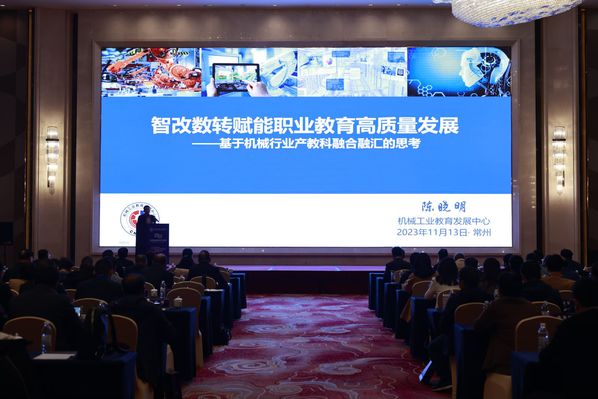 机械工业发展中心主任陈晓明从装备制造业及智改数转的战略要义、先进制造业变革与产教科融合育人、面向未来产业发展的职教专业建设、促进产教科融合融汇行业服务行动等四方面做了《智改数转赋能职业教育高质量发展》的精彩报告。