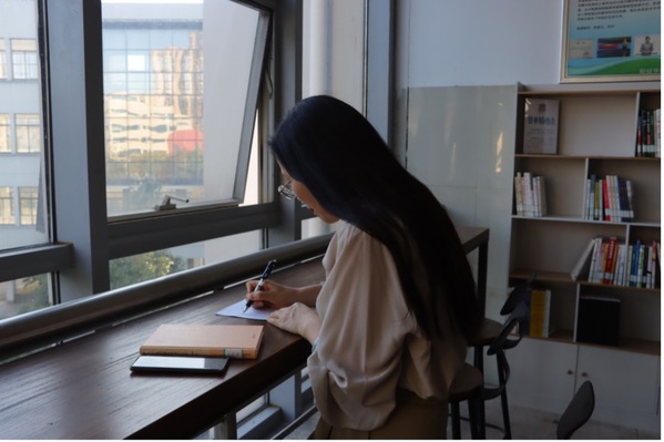 “共享读书角”位于明德楼B三楼中庭,目前提供的图书是校图书馆提供的“漂流图书”,包括红色经典、文学名著、专业书籍等多种类型,是同学们可以方便利用的绝佳资源。同时,为方便师生借阅,读书角面向全院师生实行自助管理,师生可以在读书角阅读,也可自行登记后借出阅读。