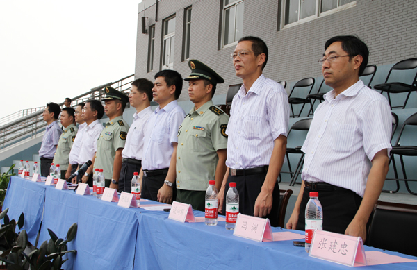 大会由学生处副处长吴斌主持,校领导朱爱胜、戴勇、谈向群、华坚、曹建林、冯渊,武警驻锡某部副政委李存华、副参谋长阮国锋在主席台就坐。老生代表、新生代表以及教师代表先后发言。武警驻锡某部副政委李春华在讲话中阐述了军训是对大学生进行爱国主义和国防教育的重要途径,希望全体学员在军训期间多一份理解和尊重,要求教官们注意科学训练、由浅入深、因材施教。