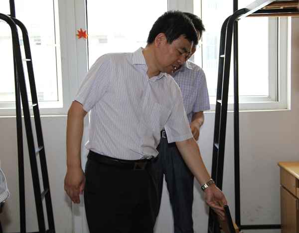朱爱胜书记察看学生宿舍家具