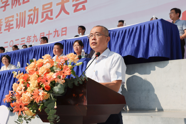 9月19日上午,2023级新生开学典礼暨军训动员会在学校体育场隆重举行。校领导龚方红、周桂瑾、杨雪琴、强伟纲、吴慧媛、储开峰、李衔、奚茂龙,各职能部门、二级学院负责人,新生家长代表、校友代表、辅导员、班主任,及4000多名新生共同参加开学典礼。副校长强伟纲主持典礼。