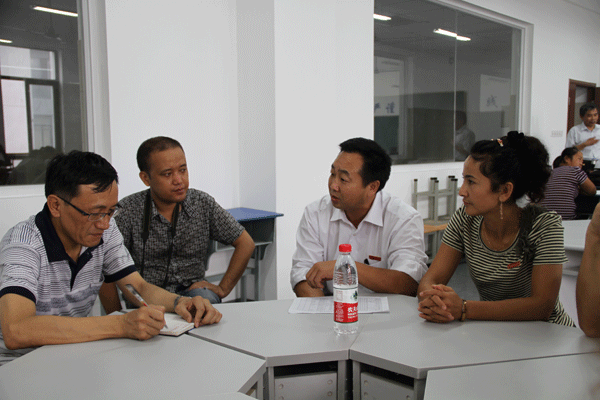 9月29日上午,新疆伊犁晚报社周末部执行主编蔡立鹏等两位记者来到必赢,采访新疆籍高校毕业生适岗培训班开展情况。副院长华坚、党办主任王国忠及相关部门负责人接待了远道而来的客人。