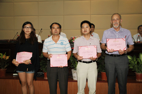 会上,院领导向32位市、院优秀教育工作者和戴勇、王怀宝、赵东新三位“30年教龄”的老师颁发荣誉证书后,学生代表许挺、教师代表奚茂龙、外教代表罗杰先后发言。
