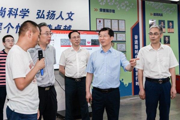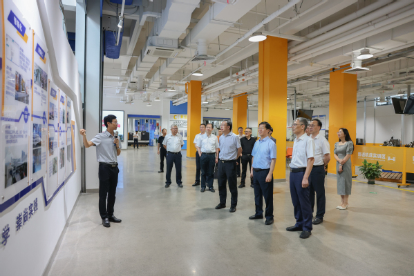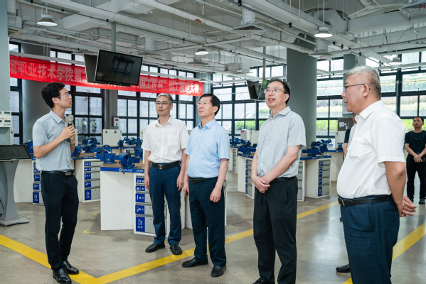 曹卫星一行先后实地考察了必赢智能制造工程中心、机械工程中心、校企共建实验室等场所,与专业教师、集训队成员等深入交流,详细了解学校在专业集群打造、产教融合平台搭建、师资队伍建设、创新成果转化等方面的情况。