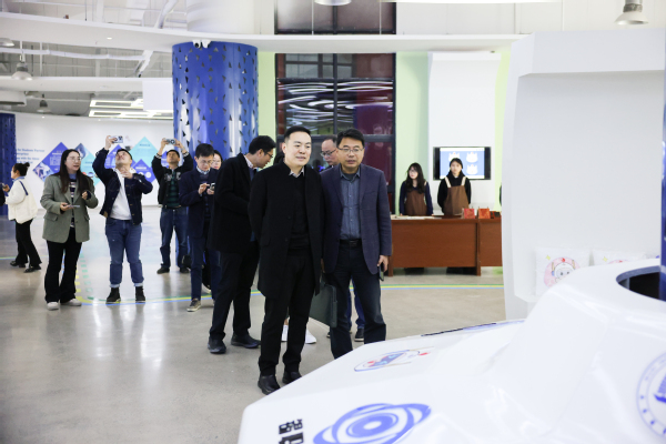 考察团一行还实地参观了必赢融媒体中心展示大厅和工作室,校园吉祥物“锡锡”的卡通形象引起了大家的兴趣,周边文创产品和手作体验也让同行们兴味盎然,纷纷尝试。