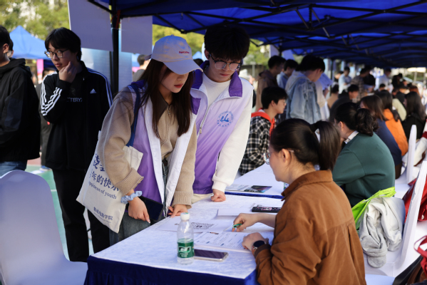 招聘会现场,校长周桂瑾、校党委副书记杨雪琴等校领导班子成员出席活动,现场开展访企拓岗,为毕业生谋求更多就业岗位。为精准对接行业需求,此次招聘会对高端装备制造及服务类企业、校友企业、民建会员企业等进行精细化展区划分,帮助毕业生找准方向、高效求职。同时,活动邀请了无锡商院等8所在锡高校及无锡民建30余家会员企业参与访企拓岗校企对接会。此外,学校精心举办毕业生在锡就业政策宣讲及专场招聘会,帮助毕业生专业精准匹配企业用人需求。无锡市人才服务中心与校团委“送岗直通车”就业帮扶在线同步进行直播荐岗活动,近5万人次线上参与,帮助广大毕业生通过直播平台了解企业的招聘需求。现场还同步提供党建志愿服务、简历门诊、毕业生留锡政策宣传与解读、征兵咨询等暖心服务,帮助毕业生群体纾困解难,让毕业生们充分体验“一站式”应聘服务。
