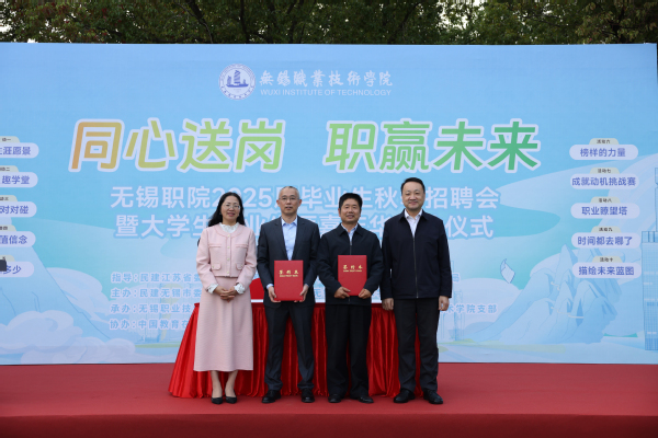 随后,民建江苏省委会企业委员会主任唐逸作为参会企业代表发言,分享了企业对人才的需求及对校企合作模式的期待,市人才服务中心向学校授予“无锡市人才引育工作站”牌匾,代表着双方在人才培养方面迈上新台阶。同时,现场成立了“民建•无锡职业技术学院”企业导师团,7位来自民建的会员企业家被聘为导师,将为学生的职业规划与技能提升提供指导。学校与市中华职教社签署了产教融合战略合作协议,标志着双方将在教育教学、实习实训、科研合作等方面开展更深层次的合作。最后,毛加弘发表讲话,她对本次活动的举办给予高度评价,并勉励广大毕业生珍惜机会,积极投身社会实践,努力实现个人价值与社会发展的双赢。