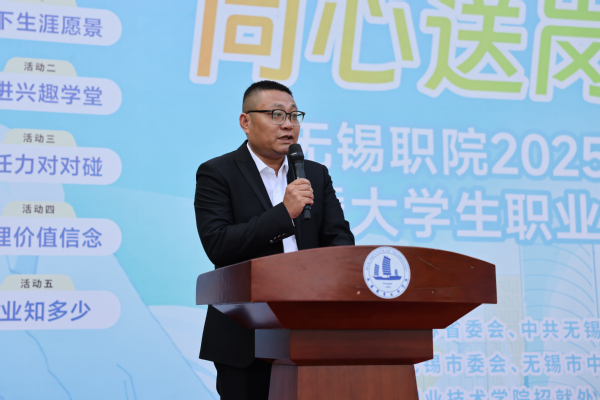 为深入开展大学生职业生涯规划教育,帮助广大学子更好地建立生涯发展系统认知,提升大学生的职业规划前瞻性和职场胜任力,11月12日下午,学校举办“锡心逐梦 职赢未来”第四届大学生职业生涯嘉年华活动。市政协副主席、民建市委会主委、市中华职教社主任毛加弘,民建江苏省委会社会服务处处长吴丹,无锡市委统战部副部长李庆华,无锡市人力资源和社会保障局人才服务中心主任陈曦,校党委副书记杨雪琴,副校长强伟纲,组织部长朱翔,学校招生就业处、各相关职能部门、二级学院领导及民建企业家代表参加了启动仪式。活动由校团委书记郑月圆主持。