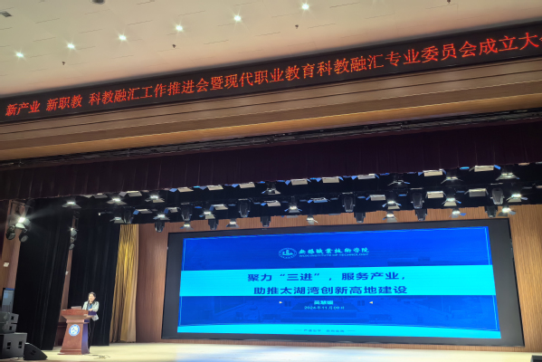 吴慧媛以《聚力“三进”,服务产业,助推太湖湾创新高地建设》为主题作交流汇报,从“集聚资源,构建产学研用集成平台、聚力‘三进’,服务区域企业‘智改数转’、科教融汇,提升教师双师四能水平”等方面介绍了学校适应产业发展、服务区域经济等方面的经验做法。该案例以评选总分第一,入选现代职业教育科教融汇专业委员会(原现代职业教育科教融汇共同体)科教融汇十佳典型案例。