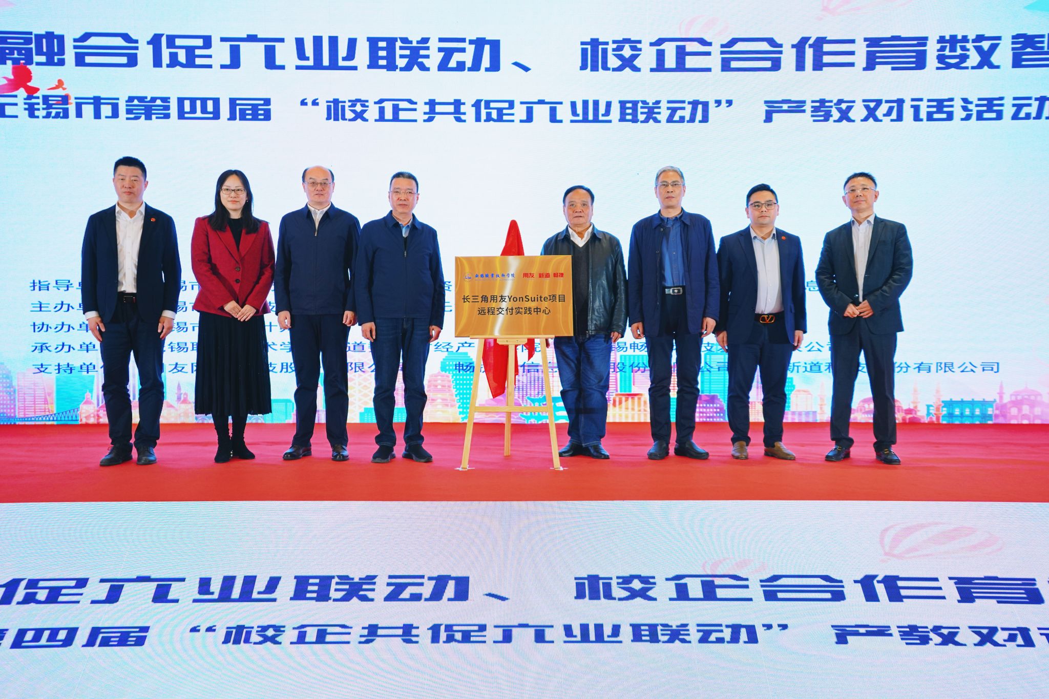 会上,必赢财经学院、用友网络科技股份有限公司、新道科技股份有限公司和无锡畅捷科技发展有限公司联合成立的“长三角用友 YonSuite 项目远程交付实践中心”正式揭牌;必赢财经学院、无锡商业职业技术学院会计金融学院、无锡城市职业技术学院会计学院、无锡开放大学财经与管理学院、无锡立信高等职业技术学校、无锡旅游商贸高等职业技术学校、江苏省江阴中等专业学校、新道科技股份有限公司、京东乾石科技股份有限公司和无锡畅捷科技发展有限公司联合成立“无锡市数智(联合)产业学院”。