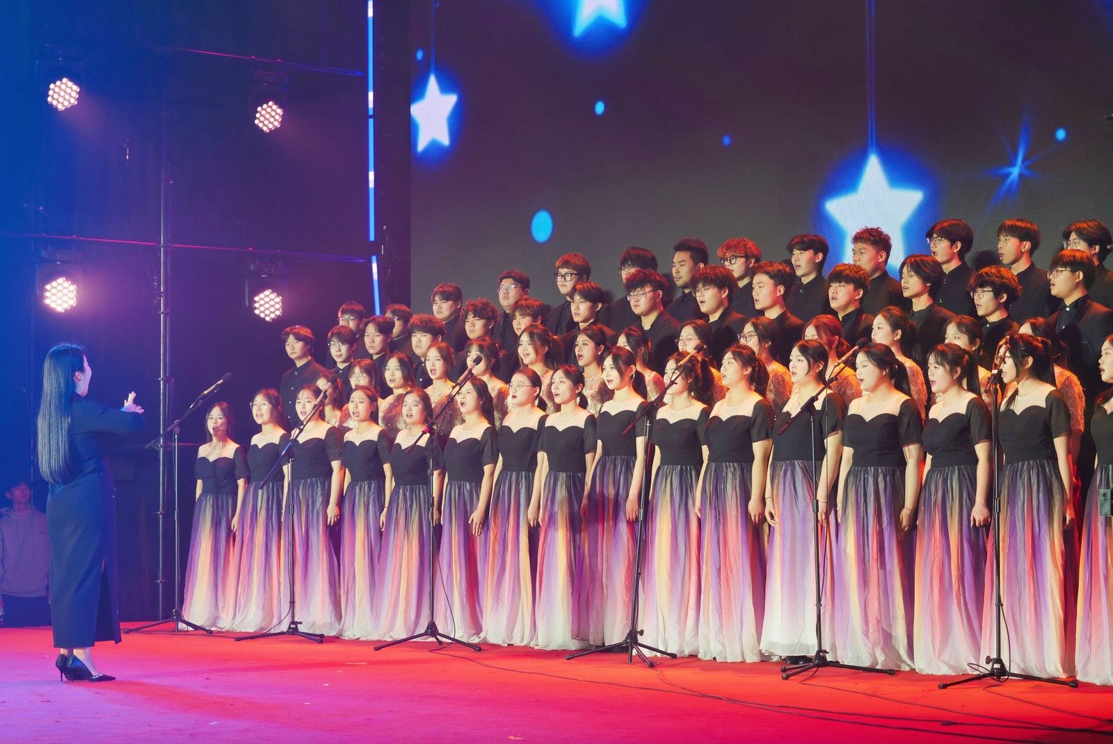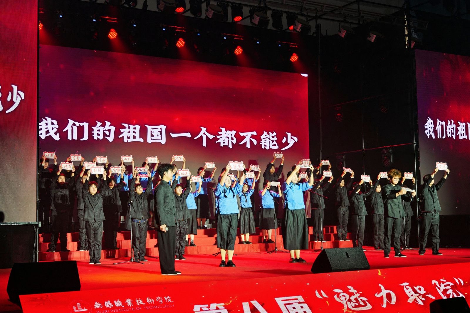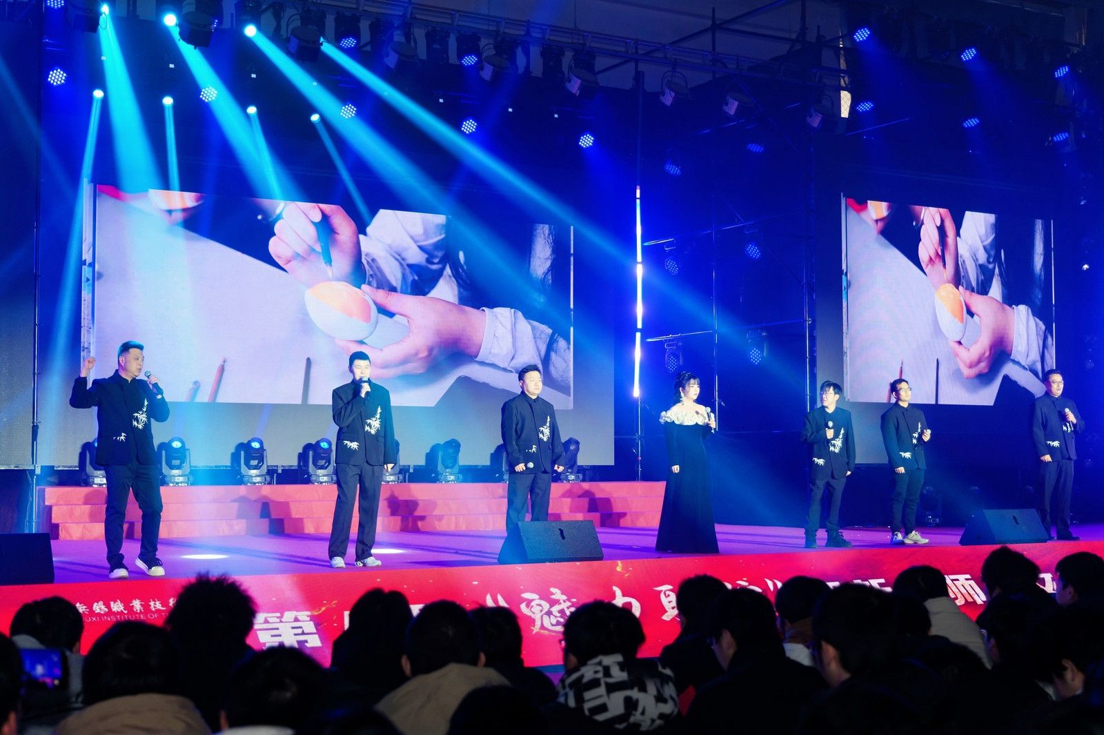 整场联欢会歌舞交融、欢声雷动。大学生艺术团的开场歌舞《我爱你中国》饱含深情地道出了师生们对祖国的热爱。物联网工程学院的《雪龙吟》唱响了中华民族山河壮丽、盛世龙腾的时代赞歌。开源创新创业学院原创情景剧《开源筑梦》结合学院特色,娓娓诉说锡职学子将小我融入大我,青春奉献祖国的成长故事。国际教育学院、爱尔兰学院选送的学生节目《五洲唱响青春之声》中外学子一同用歌声诠释青春与梦想,体现追梦人的风采和力量。集成电路学院的《芯火相传,强国有我》体现了锡职学子勇担使命,逐梦未来的蓬勃朝气。600余名师生同台演出,在绚烂多彩的舞台上用婉转悠扬的歌声、曼妙优雅的舞姿,展示锡职人对教学相长时光的珍惜与对未来的美好憧憬。