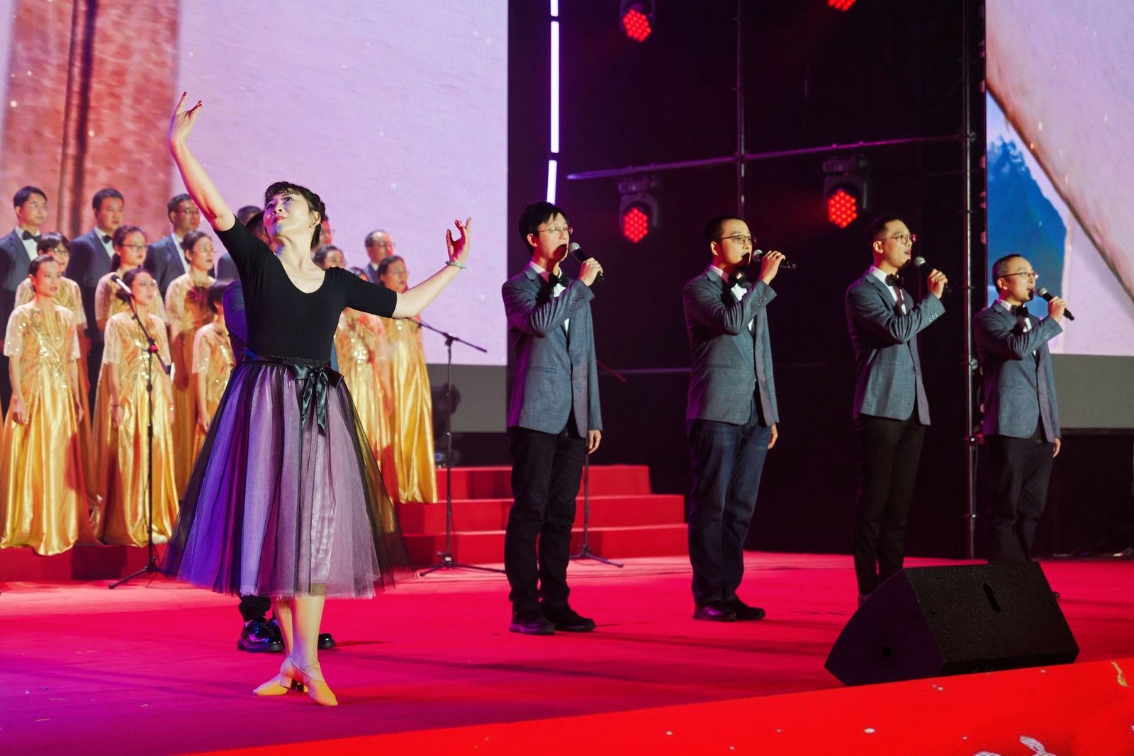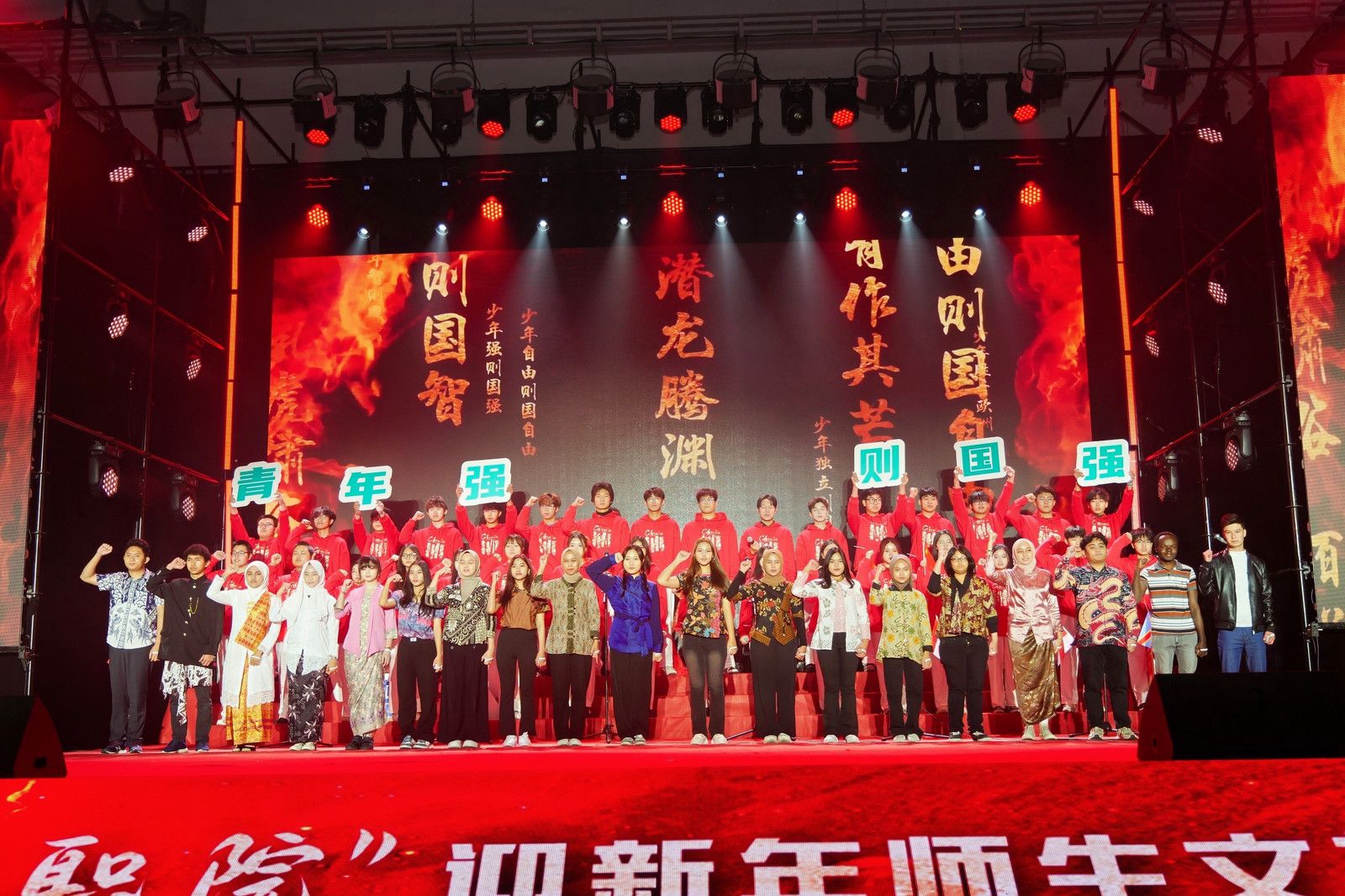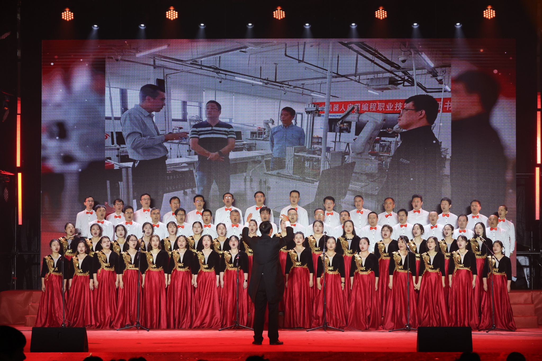 整场联欢会歌舞交融、欢声雷动。大学生艺术团的开场歌舞《我爱你中国》饱含深情地道出了师生们对祖国的热爱。物联网工程学院的《雪龙吟》唱响了中华民族山河壮丽、盛世龙腾的时代赞歌。开源创新创业学院原创情景剧《开源筑梦》结合学院特色,娓娓诉说锡职学子将小我融入大我,青春奉献祖国的成长故事。国际教育学院、爱尔兰学院选送的学生节目《五洲唱响青春之声》中外学子一同用歌声诠释青春与梦想,体现追梦人的风采和力量。集成电路学院的《芯火相传,强国有我》体现了锡职学子勇担使命,逐梦未来的蓬勃朝气。600余名师生同台演出,在绚烂多彩的舞台上用婉转悠扬的歌声、曼妙优雅的舞姿,展示锡职人对教学相长时光的珍惜与对未来的美好憧憬。
