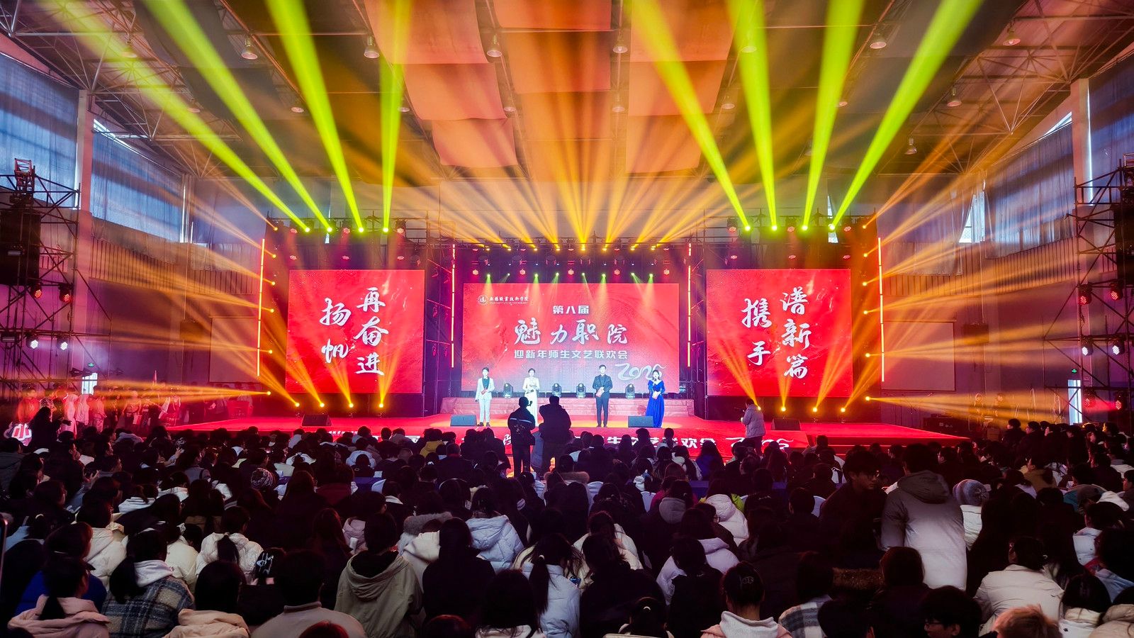 12月24日下午,第八届“魅力职院”迎新年师生文艺联欢会在太湖校区体育馆隆重上演,校领导龚方红、周桂瑾、杨雪琴、强伟纲、吴慧媛、李衔、奚茂龙及近2000名师生员工参加活动。联欢会通过直播平台向校内外师生、校友及社会各界人士直播。