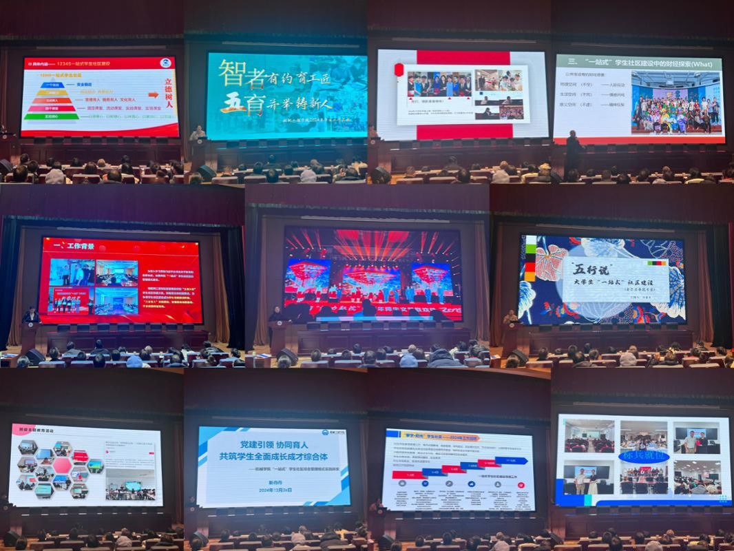 学生处处长徐悦主持汇报会。各学院围绕培养高素质技术技能型人才目标,结合工作实际依次汇报了2024年“一站式”学生社区建设的重点和成效,其中,管理学院聚焦多层次、立体化育人大格局,以“义心毅行”工作品牌,打造12345一站式学生社区;物联网工程学院坚持立德树人,聚力“一核四圈”,培育“五有六乐”技术技能人才;设计艺术学院以“做离学生最近的那束光”为育人工作出发点,坚持心理育人主线,打造网络育人新阵地;控制工程学院构建“‘智’者有约”特色活动,坚持“德育铸魂、智育启思、体育强身、美育润心、劳育践行”,促进学生全面发展;机械工程学院以党建引领为核心,强化协同育人理念,以“一核心、双主体、六维度”建好学生全面成长成才综合体;集成电路学院锚定“五芯”精准发力, 构建“五育”融合一站式,打通思政育人“最后一公里”;开源创新创业学院以“五育融合、五创并举”赋能学子成长,将“一站式”学生社区打造成立德树人的“大舞台”;汽车与交通工程学院解锁汽车学工“1234”密码,赋能“擎学·阳光”学生社区;爱尔兰学院解读“五行说”一站式学生社区建设,坚持社区建设为了学生、依靠学生、与学生共享;财经学院结合学生思想实际,以学生“社区”建设需要凸显和回归的核心内涵,生动展示财经社区“共同体”建设的探索与实践;文旅学院构建“4321”实践育人体系,创新“标兵就位”“文旅青年说”“勇往‘职’前”“思想沟通小会场”育人品牌,打造契合专业的育人项目。