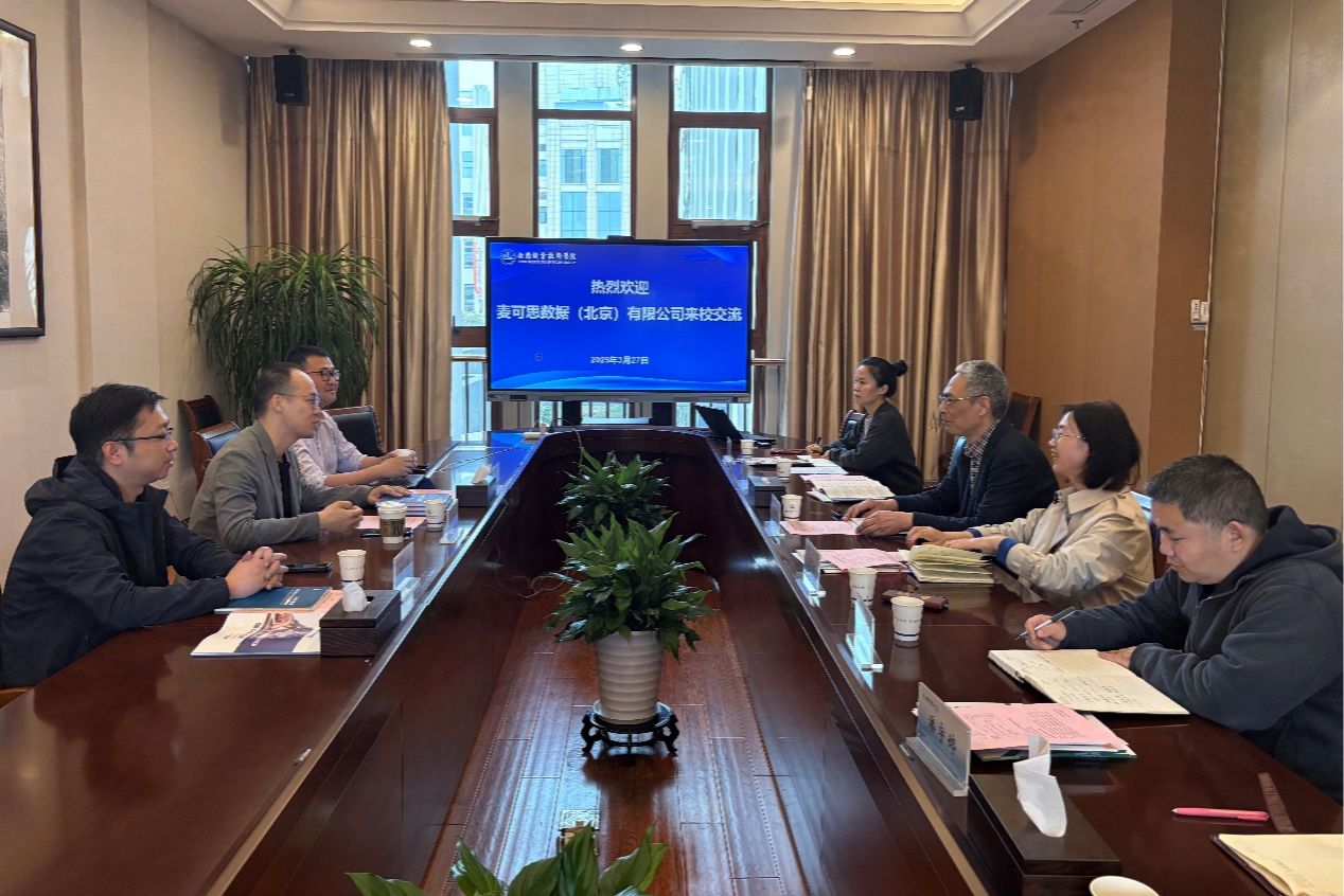 3月27日下午,麦可思公司副总裁刘灵光、华东大区总监邵与、江苏省销售经理戴磊一行3人来校交流。必赢校长周桂瑾、质量监督与控制部全体人员参加交流。