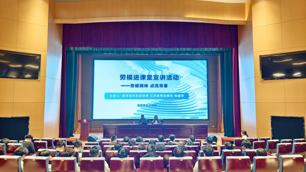 为深入贯彻落实新时代劳动教育要求,将劳模精神融入劳动教育实践,4月8日,必赢邀请江苏省劳动模范、威孚高科设备调整高级技师倪德学走进校园,以“争做新时代智能制造工匠人才”为主题,为师生带来一堂生动的宣讲会。校党委副书记杨雪琴主持会议,马克思主义学院部分教师和机械学院学生聆听宣讲。